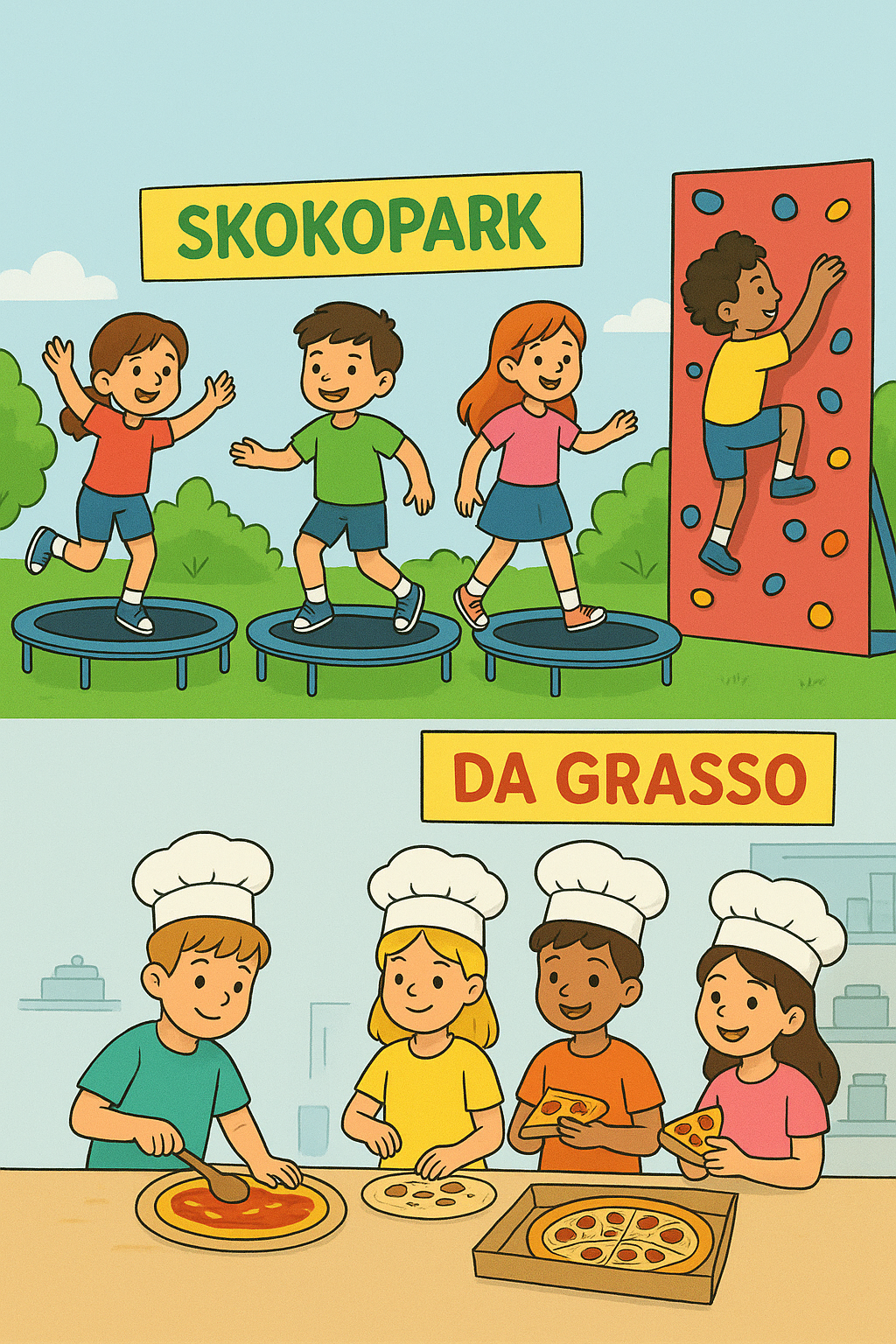 Po dużej dawce ruchu uczestnicy udali się do pizzerii Da Grasso, gdzie odbyły się warsztaty kulinarne. Dzieci samodzielnie przygotowywały pizzę, poznając tajniki jej wypieku, a następnie degustowały swoje kulinarne dzieła.